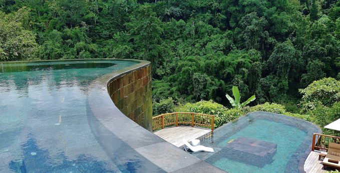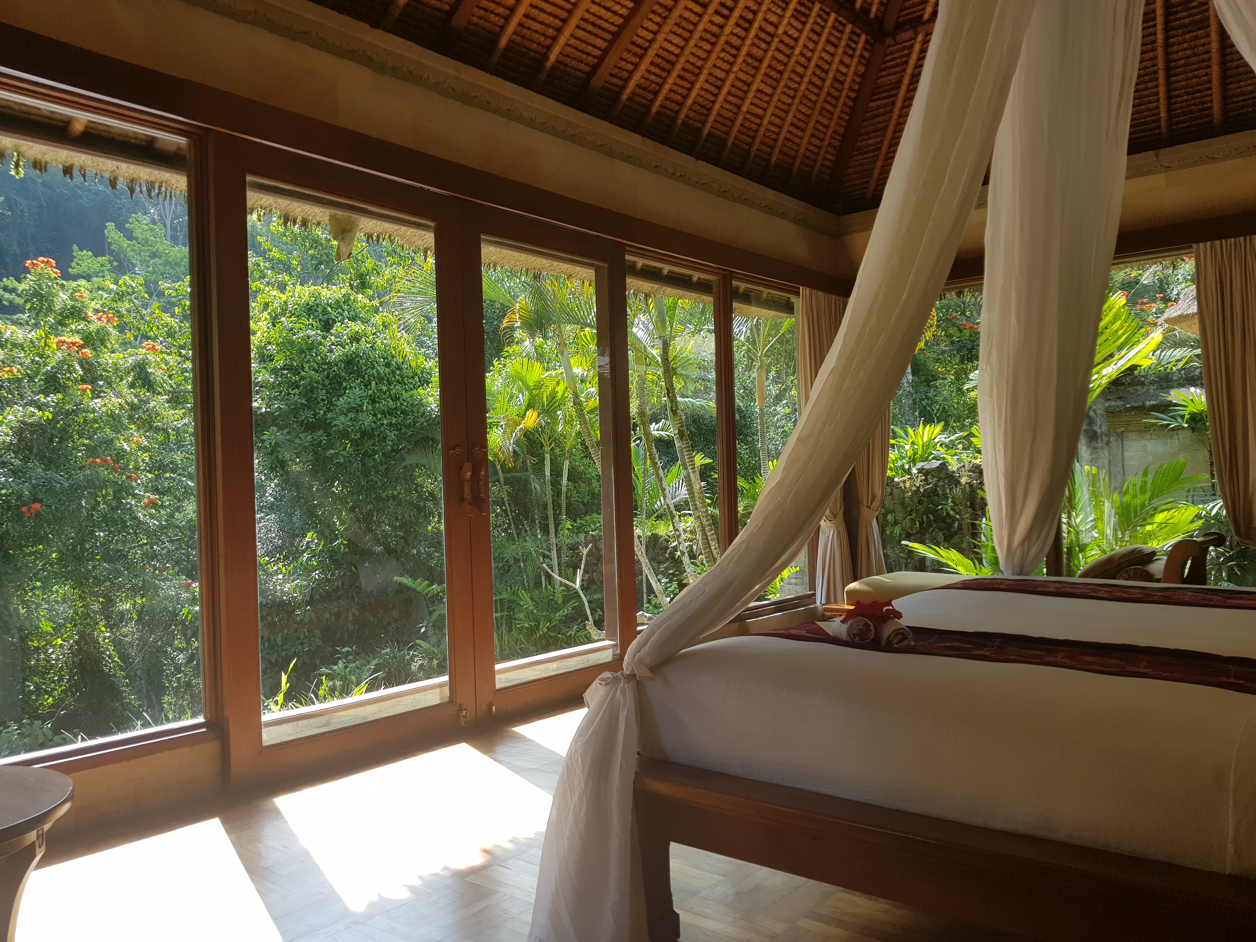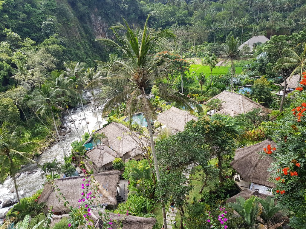 We stayed at Royal Pita Maha Resort, in a villa with private pool and stunning views towards the jungle. The resort’s gardening, surrounding landscape, room architecture with heavy marbles and the common pool options are on another level. Truly unique experience! The river is adjacent to the property and you can hear people rafting boats. One of the best hotels we stayed in! This place is truly paradise! There’s a free shuttle to Ubud, so you can visit ubud attractions or have dinner at any restaurant there.