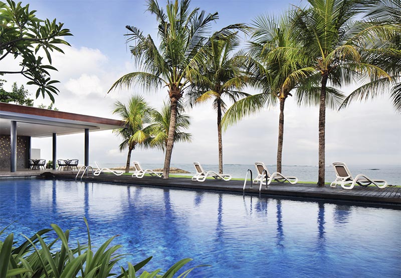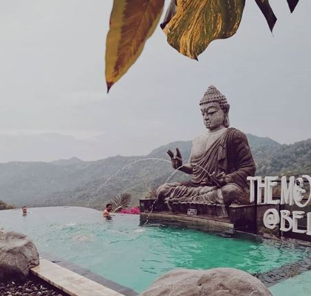 • The Monkey Bar At Bella Kita : Modern swimming pool with giant Buddha statues on the banks of the pond, above the hill area.