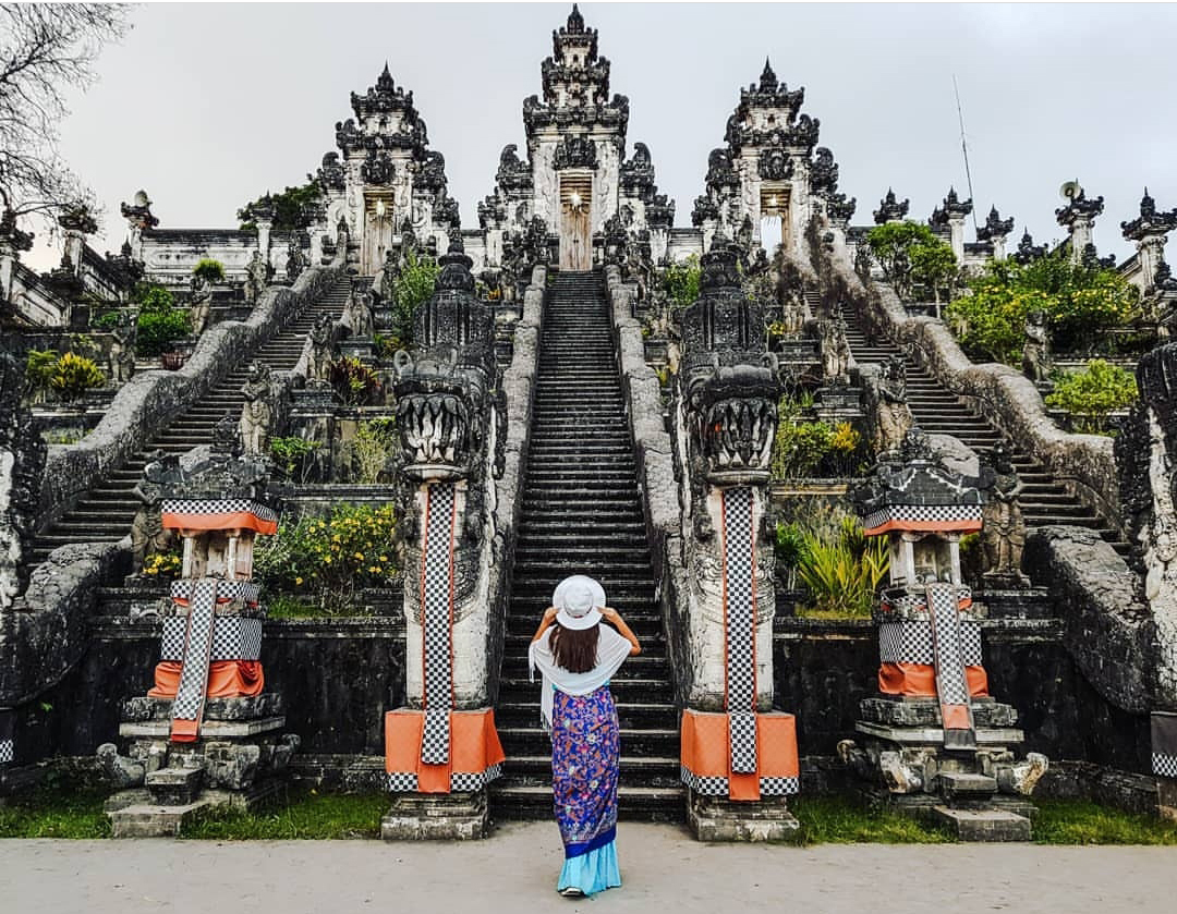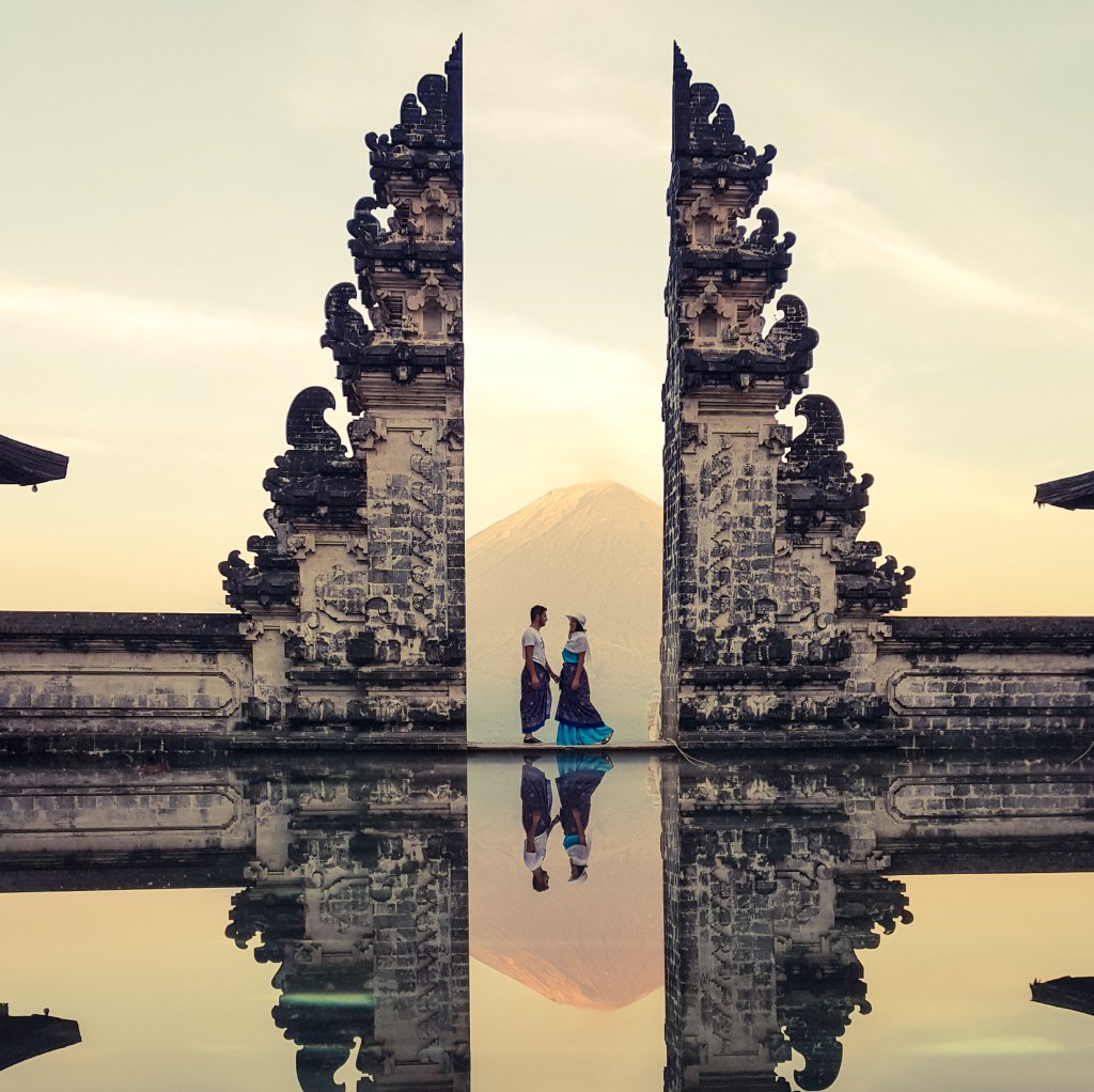 • Pura Lempuyang : One of the oldest and most sacred temples on the island. Situated quite far from the touristy areas of Bali, it took us 3 hours to reach the temple. The reason why most people visit this temple is to take a photo with the Heaven Gate and Mount Agung. You have to wear a sarong or a scarf to cover your knees and shoulders. The best time to visit is at sunrise so you can take better pictures with no crowd at all.