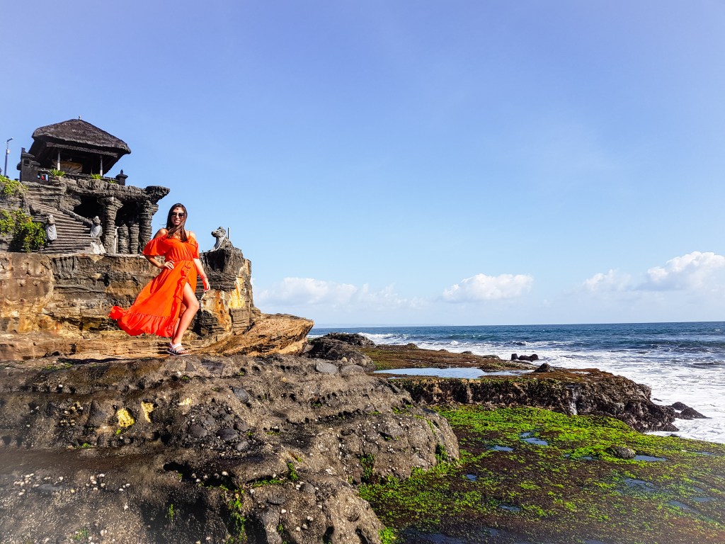 • Tanah Lot Temple : Famous for its unique location and spectacular sunset. It’s an ancient Hindu shrine perched a top of a rocky overlooking the sea.